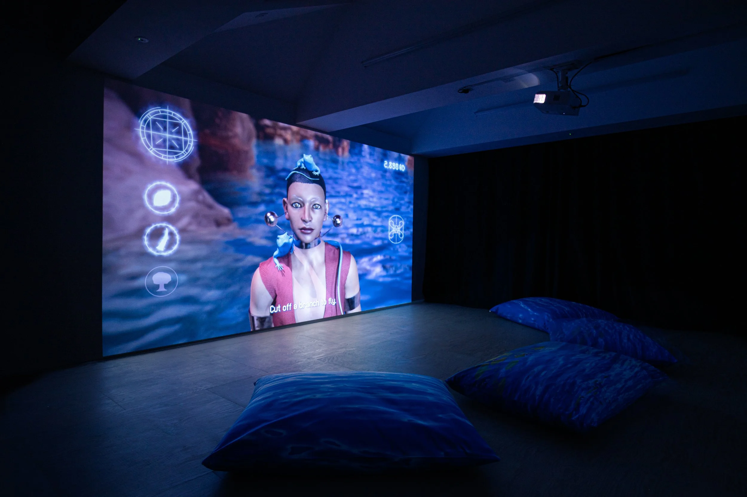 Sarah Al-Sarraj (b. 1997) is a visual artist and cultural worker based between Pittsburgh (US) and London (UK). Her work centers on worldbuilding as a creative and critical process, where painting and immersive technologies are understood as portals to other worlds. Predicated on the belief that our world was designed in service of imperial violence, she builds new lifeworlds rooted in land, spirit, and ancestry. Currently working with game engines, she is interested in appropriating military simulation technologies to build uncolonisable realms inspired by Global Majority knowledge systems and emerging quantum thought.